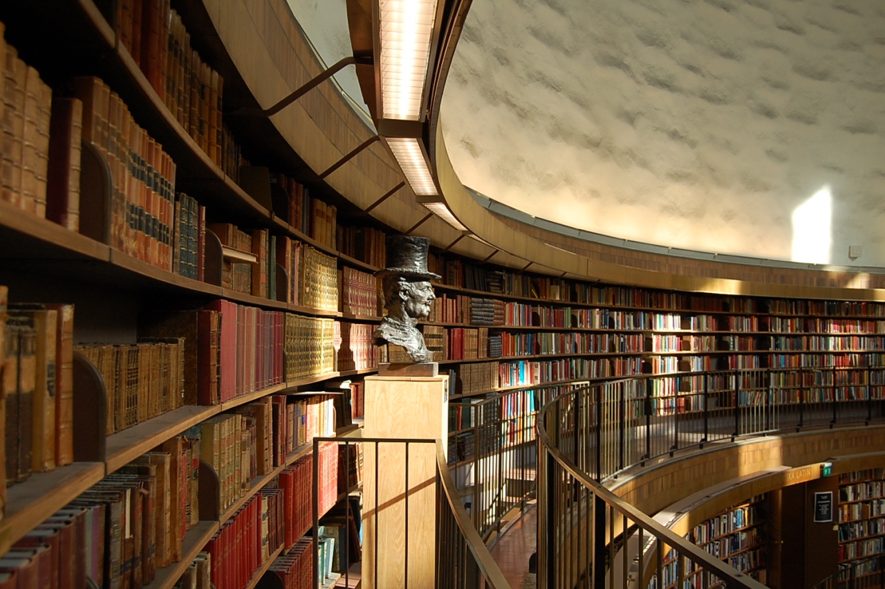 円形の内部の壁一面に本が並べられていてその風景はまるで美術館の様でした。