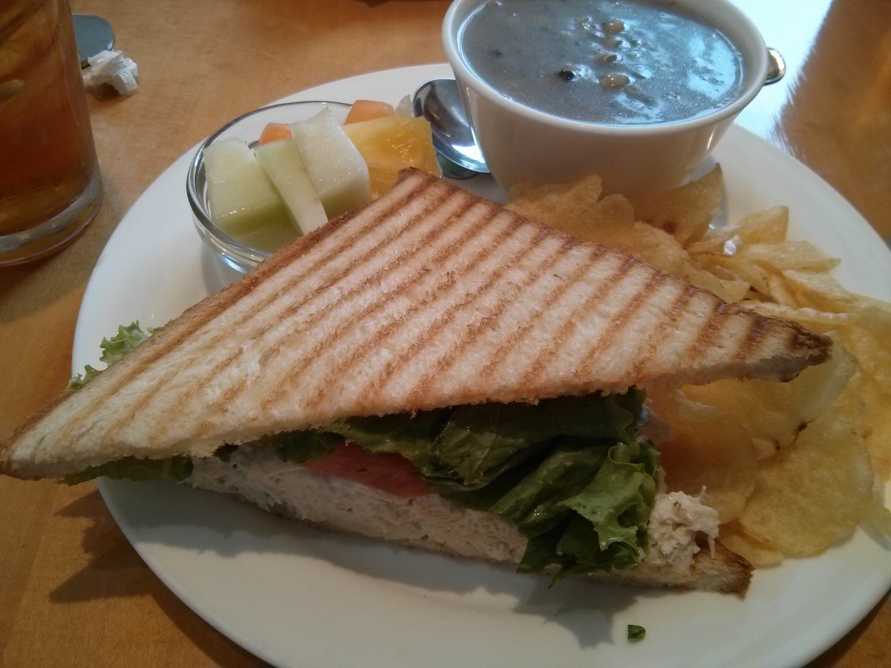 ハーフサンドにスープ、チップス、フルーツがついたものを頼みました。