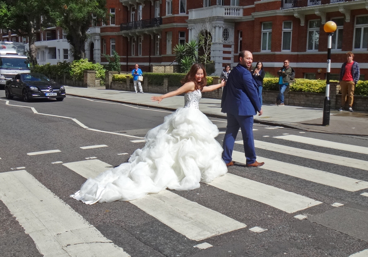 世界中から,色んな人たちがやってきて,思い思いのスタイルで横断歩道を渡っている写真を撮ってもらってます