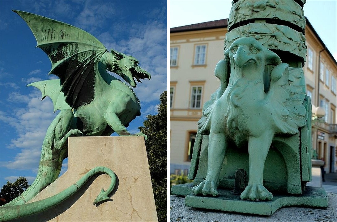 リュブリャーナのシンボル、竜の彫像が橋を守っています