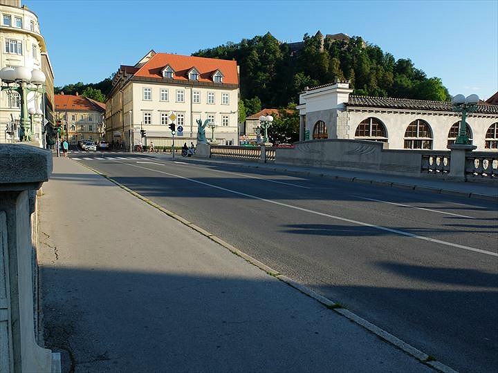 両側のたもとに、リュブリャーナのシンボル竜の彫像が置かれているのが名前の由来になっているほか、橋の街灯の柱にも、コミカルな表情の竜の彫像が付いていました。