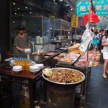 特に羊肉の串焼きや、ナン、ラグメンと呼ばれる西域独特の麺料理を出す屋台などが多く、スパイスの香りで漂っていています。