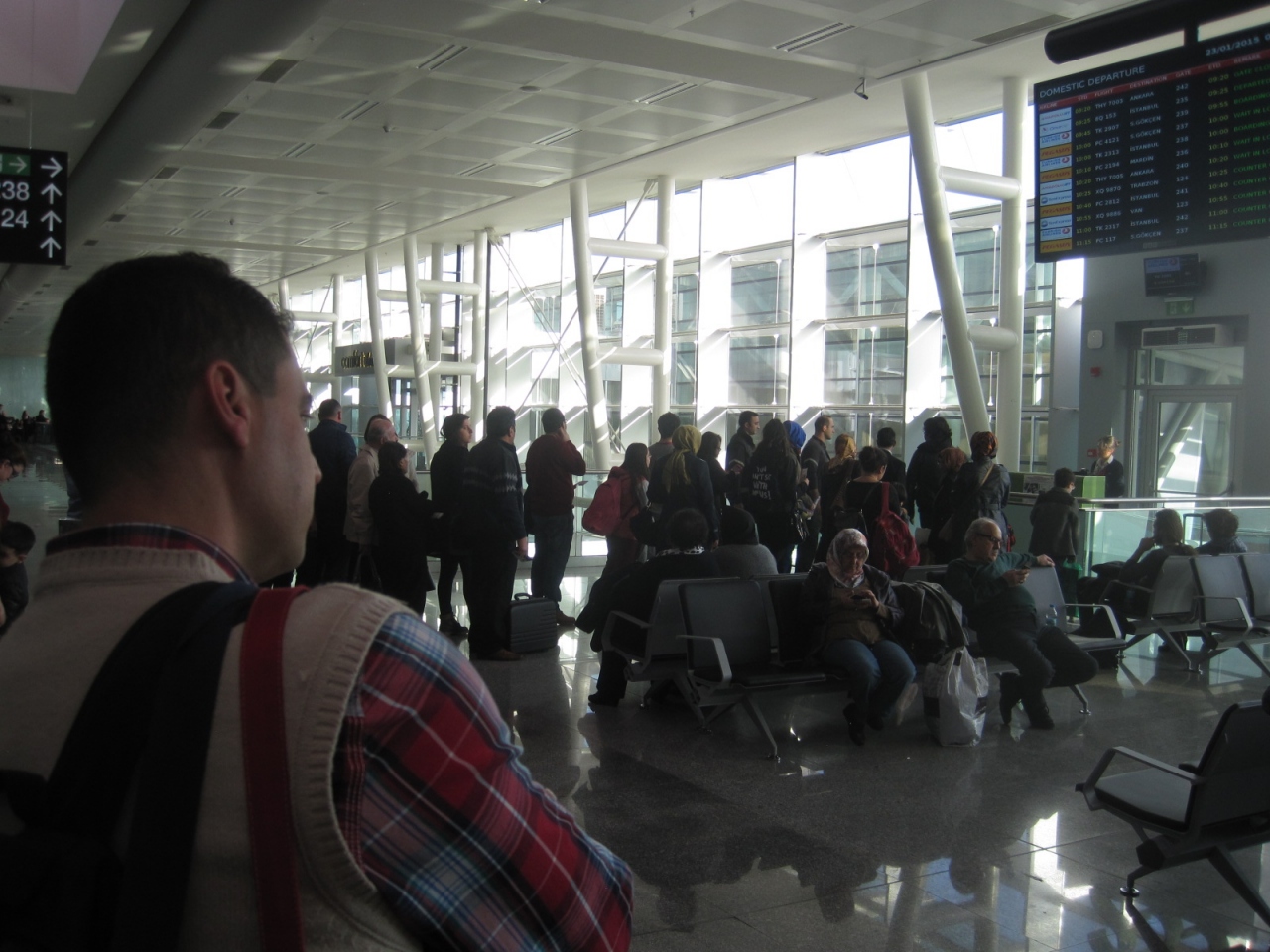 国際線からの乗継のお客は別に案内され、工事中の通路をだらだらと移動させられて、国際線の荷物受取から外へ。