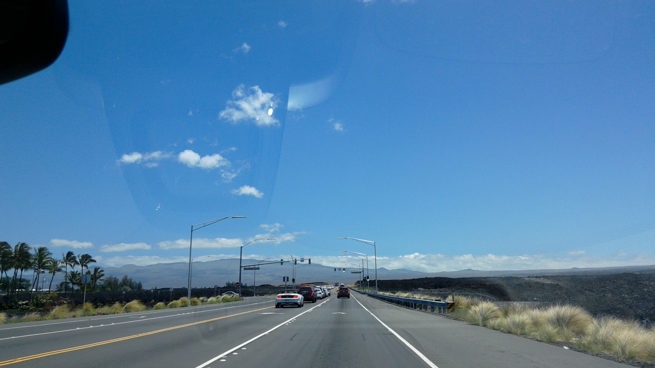 溶岩台地の中を通りコナから向かうと左手にコナ空港そしてその先には太平洋・マウイ島、右手にはファラライ山・マウナ・ケアの山々が見えドライブするには最高の景観を見芽事が出来ます。途中にビューポイントの駐車スペースもありフォトスポットになっています。ワイコロアに宿泊の為、毎日、何度となく通ったハイウェイです