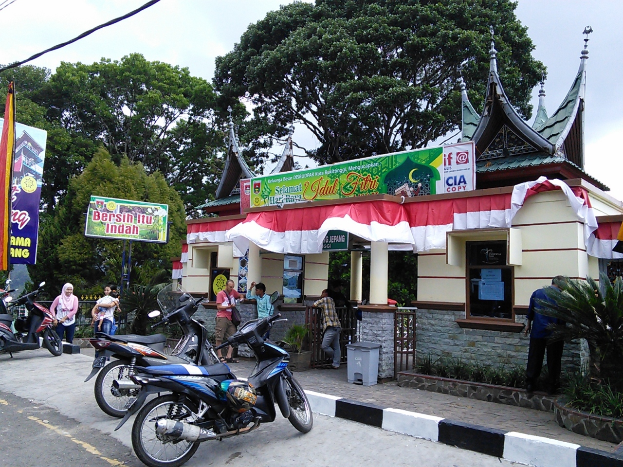 ミナンカバウ族の伝統家屋の屋根を模した東屋が点在するかわいらしい公園です。ガライ シアノッ渓谷の雄大な眺めがすばらしいです。公園内西側、土産物屋を抜けた先に展望台があるのですが木が邪魔して半分しか景色が眺められないのが残念。