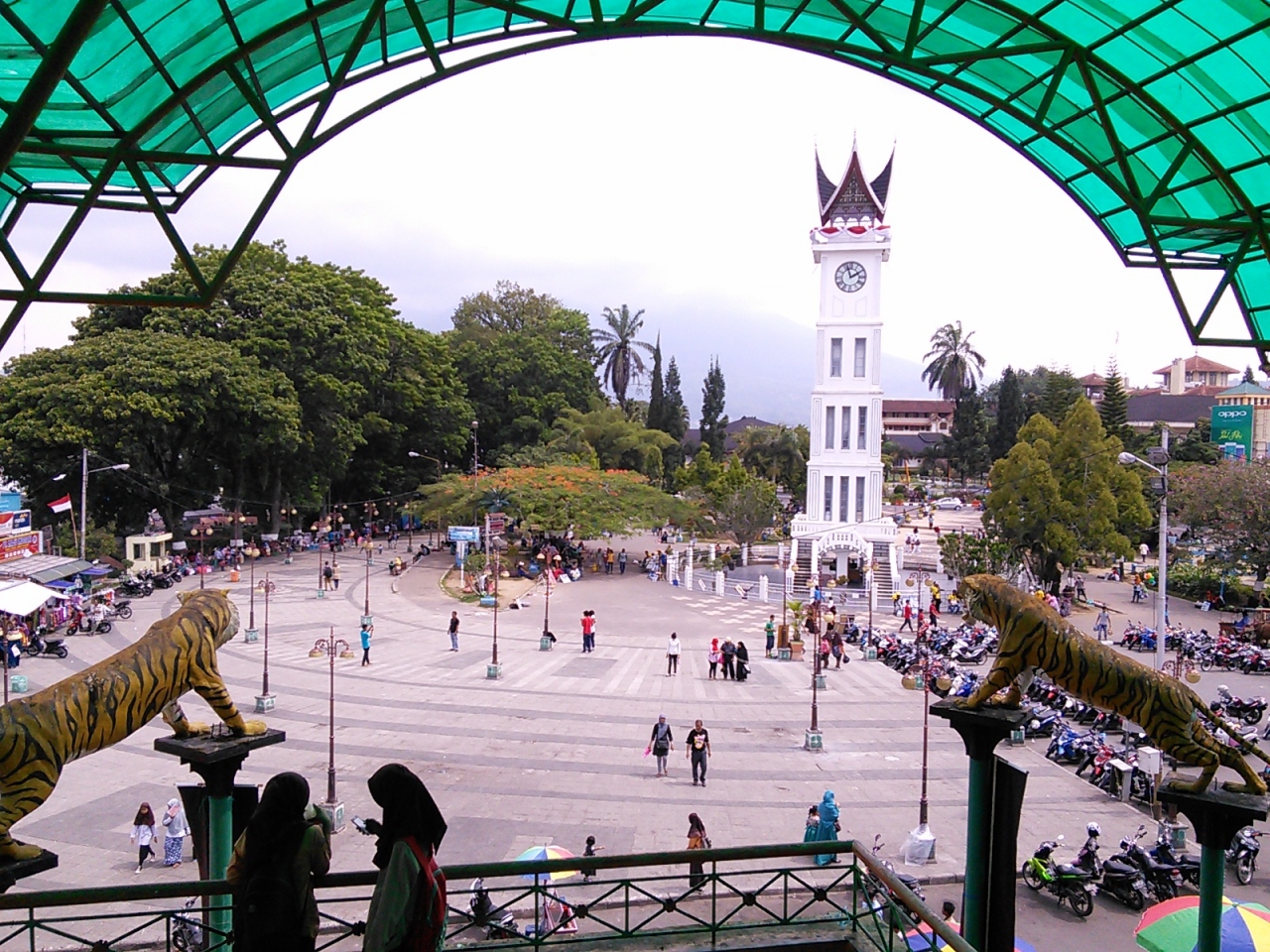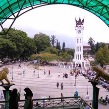 ブキティンギの中心でありシンボルにもなっている時計塔。周りは広場になっていて記念写真屋や物売り、露店も多く、周りにはアタス市場、Ramayanaショッピングモールもあり観光客のみならず人の集まる場所でもあります。タクシー代わりの馬車もずらりと並んでいて高原の町らしく何ともメルヘンチックな雰囲気です。