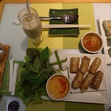 ベトナムといえば生春巻き☆と言うことで、生と揚げをオーダーしました。スタンダードなモノを頼んだのですが、生春巻きはハーブが強くタレもイマイチ。揚げ春巻きは普通に美味しい。タレが美味しかったので生春巻きもそちらをつけたら味が良くなりました。流行りのエナジーシェイクは美味しかったです。ハーブが少し強いので苦手な人は入っていないのを選んだ方がいいです。