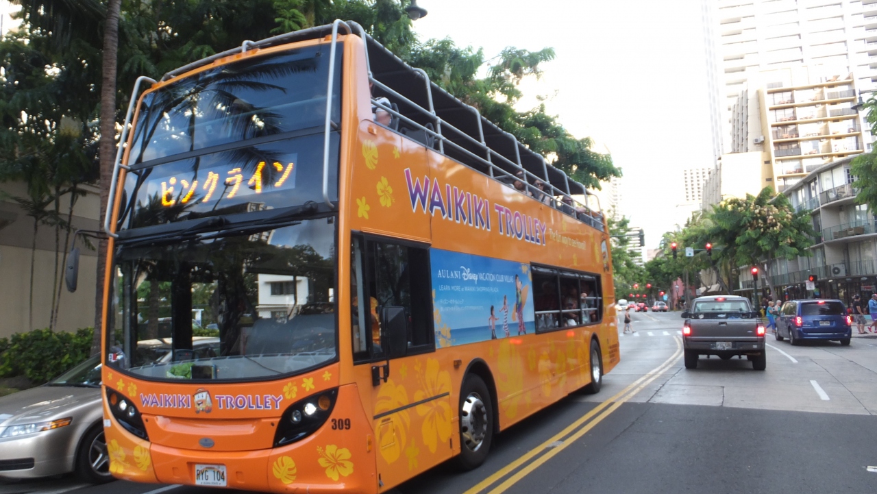 ワイキキ・トロリーは、数あるワイキキのトロリーの老舗。車両も大型です。