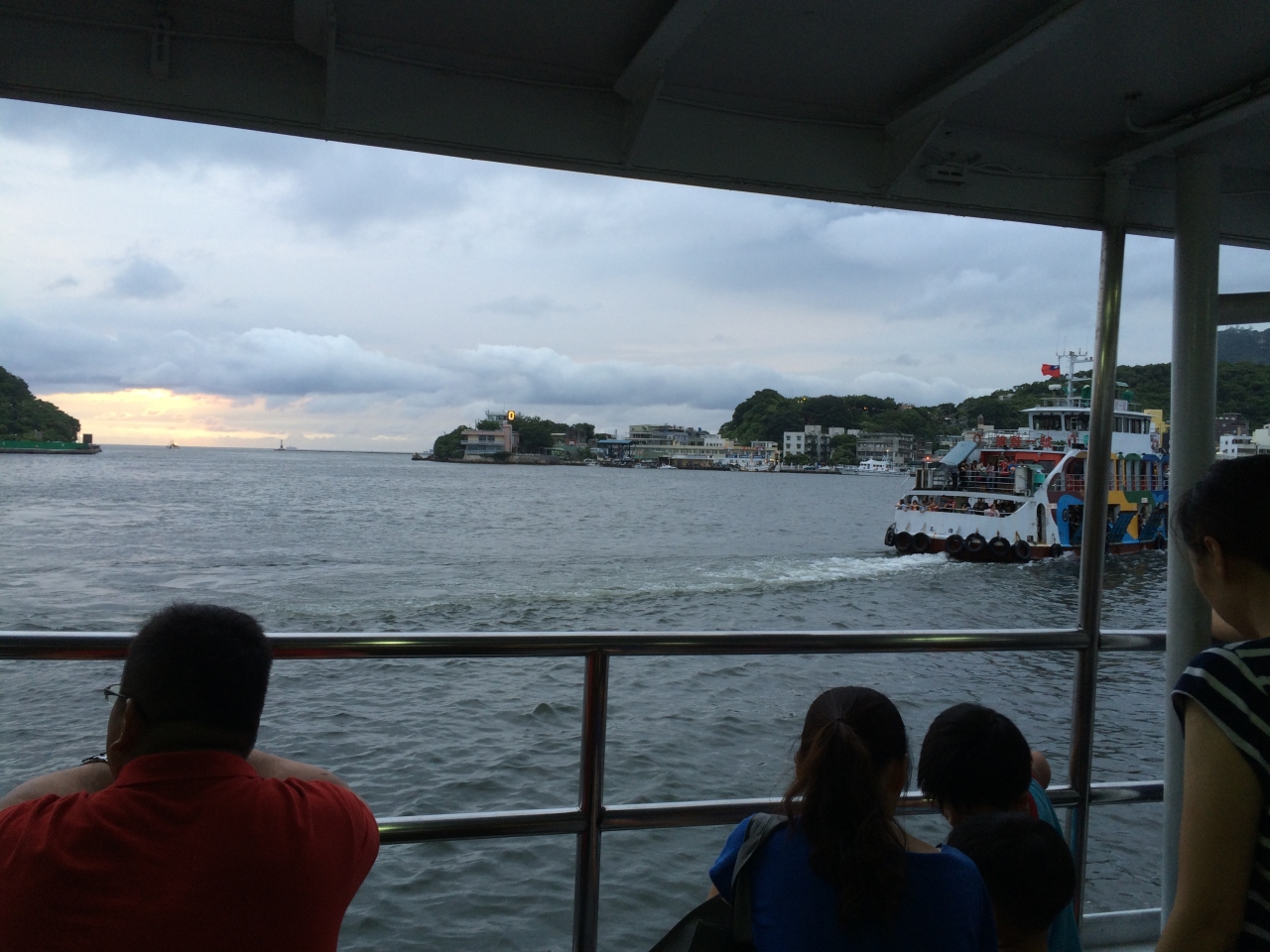 フェリー乗り場に行くと行列になっているので、並びましょう。大人25NT。二人だったので、50NTのコインを作っておきました。どんどん人を入れるので、コインを用意しておいたほうが良いでしょう。