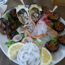 @海の幸盛り合わせ:怒涛の新鮮魚介がいっぱいで驚く。
