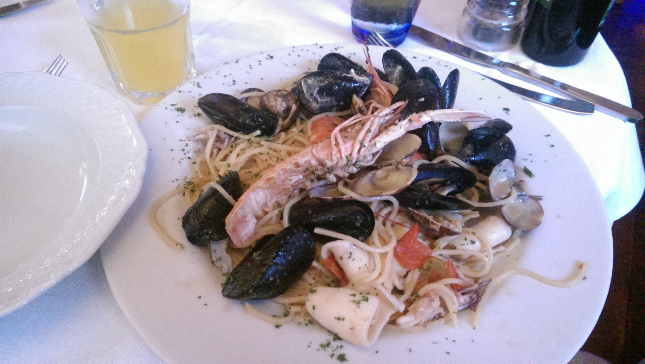 マナローラに行ったら、必ずここのレストランでこの海の幸スパゲッティを食べます。新鮮な海の幸は港のすぐ近くということもあり、おいしさが違います。8月だったためか観光客が多すぎて少々お店の人も商業主義っぽくなっていましたが、4月ごろだと季節もよくより良いのではないでしょうか。