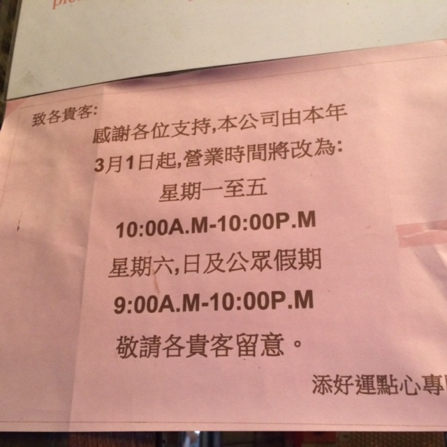しばらくするとシャッターがあいたので、中の椅子に座って待つことができましたが、お店の貼り紙には3月1日より、月~金は10時開店、土、日は9時開店と書いてありました。