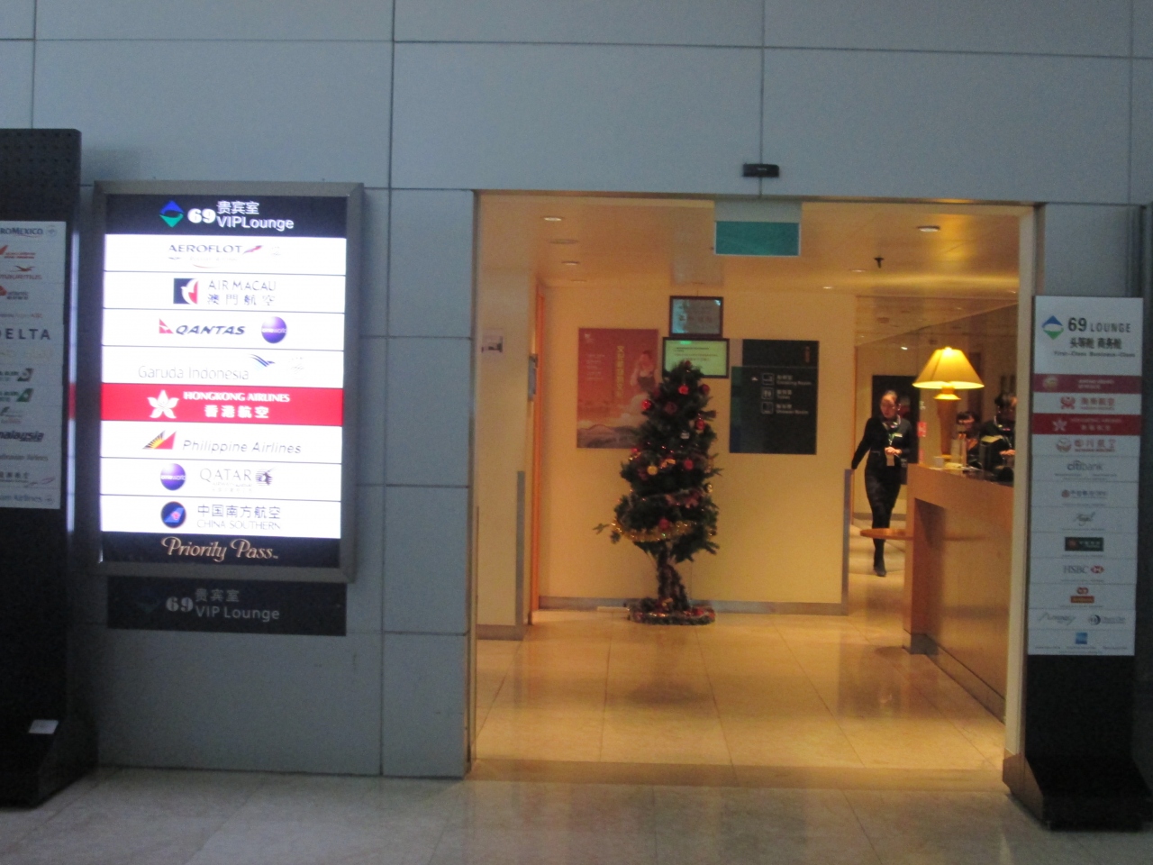 プライオリティパスを使って利用しました。使った時には人がそんなにいなくてよかったです。受付を通ると、ファーストクラス用とビジネスクラス用があり、両方使えました。食事は少しありましたし、飲み物もいろいろありました。