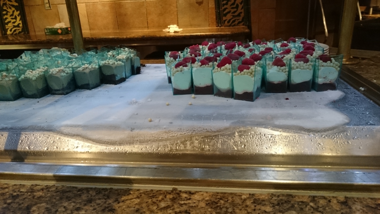 ルクソールのブッフェ。地下にあるので窓がないが、ホテルのイメージに合わせて、お店の中の雰囲気はエジプトだか、、料理は多国籍。カニや牡蠣もありますが、冷凍もの(仕方がないですが)で、ちゃんと解凍できていなかったり、味が薄かったりする。寿司は最悪。お隣のエックスがリバーとの共通一日券がある。値段が20ドル代なので、値段相応といえはそれまで。高級感はありませんが、子ども連れにはいいかも。