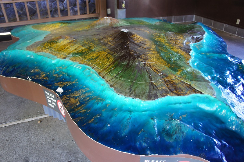 ボルケーノハウスの向かいにある施設です。ハワイ島の大きくて精巧な模型があったのが印象的です。館内では日本語の資料もありました。レンタカーで行ったので、公園入口ゲート(料金所)で同じ資料をいただくことができました。