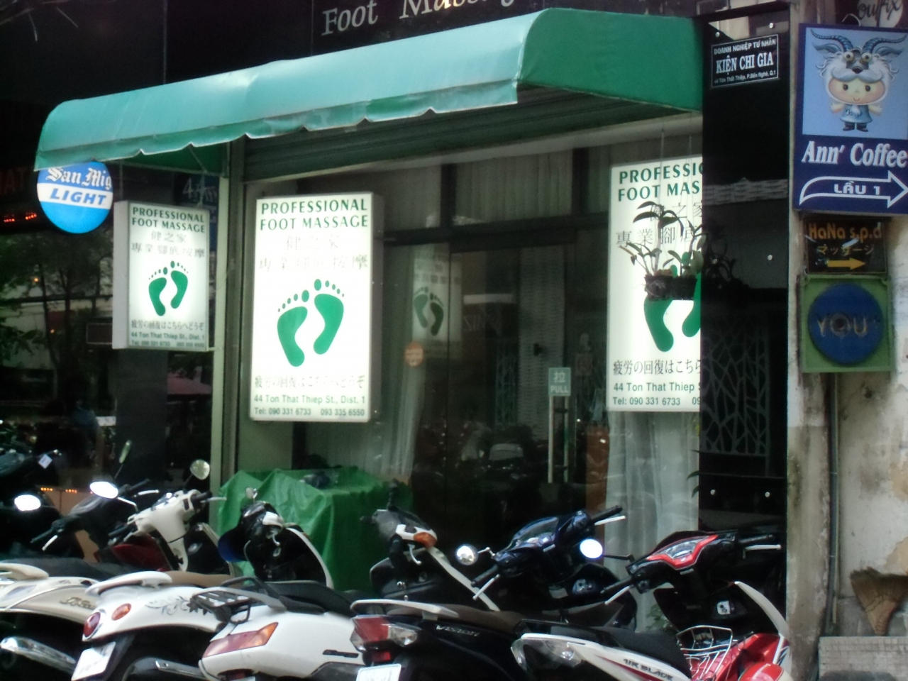 フットマッサージの中では大型店ですが、従業員に対する教育は行き届いています。フットマッサージ専門店で、基本は70分コースです(延長もできます)。フットマッサージといっても、約50分のフットマッサージ後に腕と手、頭、肩、背中のマッサージもあります。無料の熱いお茶もでます。膝上までズボンがまくれない場合は、お店が用意している短パンにトイレで履き替えます。チップ込で70分25万ドン(約1400円)と、値上げされていました。
