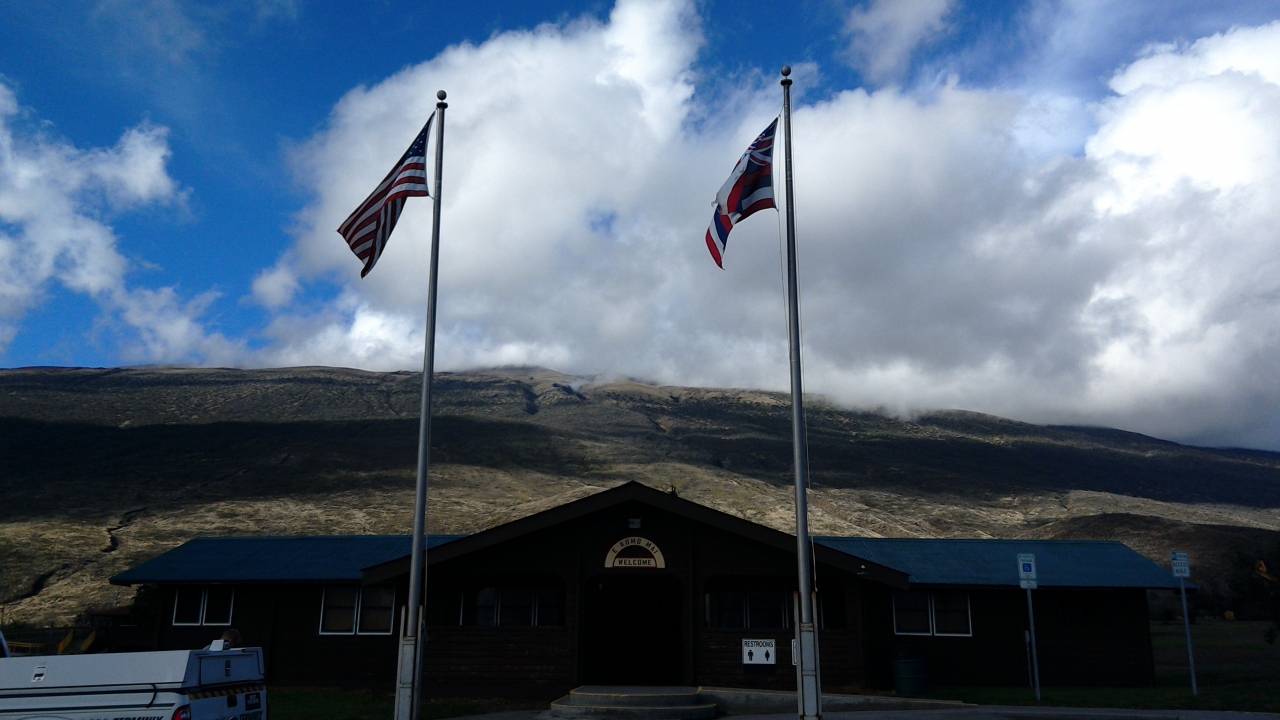 景色も最高で曇っていたのではっきりと見えませんでしたがお天気が良ければ両サイドにマウナ・ケアとマウナ・ロアが見れます