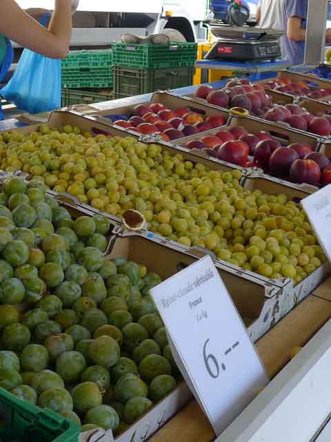 レマン湖の対岸の山々も見えて、気持ちのいいマルシェです。