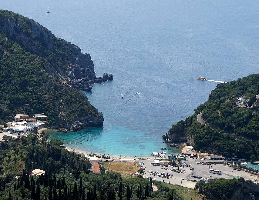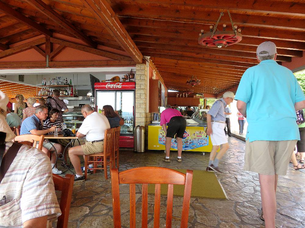 パレオカストリッツァビーチを見下ろす高台にあり、店のテラスからは眼下にパレオカストリッツァの5つの美しい湾を一望することができます。私達はパレオカストリッツァからレンタカーで狭い急な坂道を上り、レストランの駐車場に車を止めて、休憩しました。観光バスも立ち寄るところで、観光客で込み合っていたので、冷たい飲み物を頼んだだけでした。レストランの料理が美味しいかどうかはわかりませんが、ここからの景色を眺めるだけでも、立ち寄った甲斐がありました。