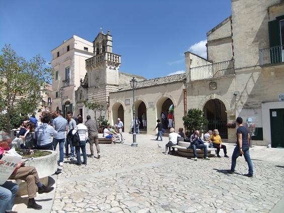 サッソ・バリサーノ方面からフィオレンティーニ通りを歩いて移動しました。最後の階段が疲れましたが、広場に出ますと風景が急に近代的な雰囲気になって少しホッとする感じです。広場に面したテラスからはドゥオモを正面にしてサッシ群の景色を見ることができました。