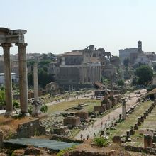 カンピドーリオ広場に階段を登り フォロロマーナを 上から見下ろします。婦人警官の人にきいたら広場の左側からの景色がいいそうだったので 左に少し降りたところで写真をとりました。確かに フォロフォマーナを一望出来る素晴らしい景色でした。