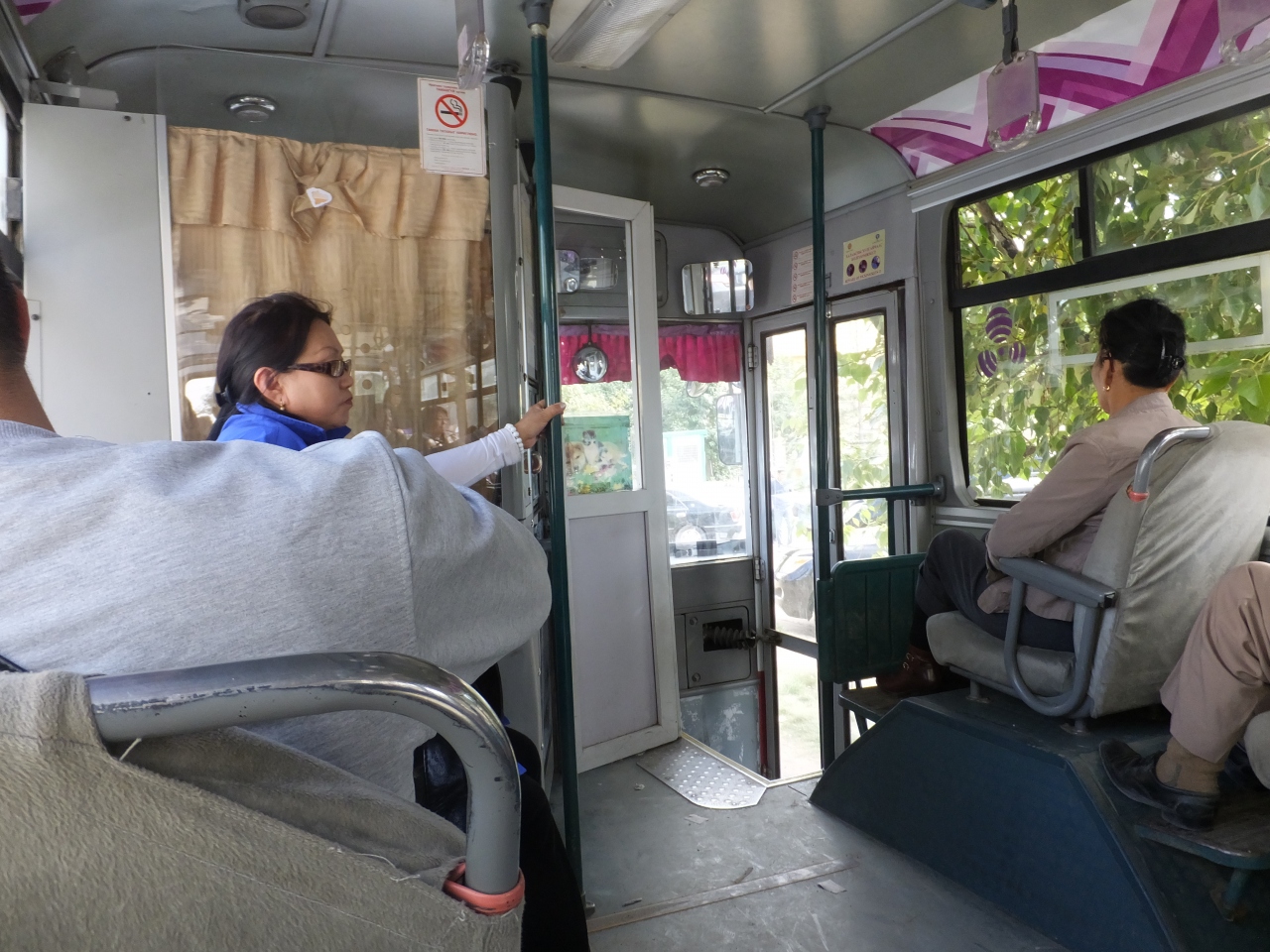 - 1区間:500トゥグリク(約\30) 料金は車掌に払います。