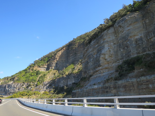 ローレンスハーグレイブ道を南下すると、いきない海岸線上に橋が出てきて、その右側には崖っぷちがある。崖の部分を超えると左手に駐車スペースが出てくるので、そこのクルマを停めて見る眺めは、非常に開放感がある。