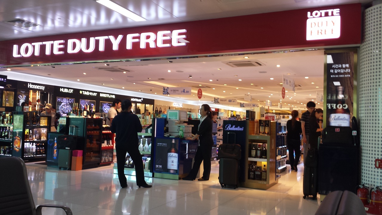 金浦空港国際線の出国ゲートエリアにある免税店です。出国審査を抜けると、まず新羅免税店があり、そのまま50メートルほど進んだところに、このロッテ免税店があります。品揃えは、新羅と大差なく、化粧品関係や食品など最低限のお土産は揃っています。マッコリチョコや高麗人参チョコなど、美味しいかは別として、韓国っぽいバラマキ土産もあります。