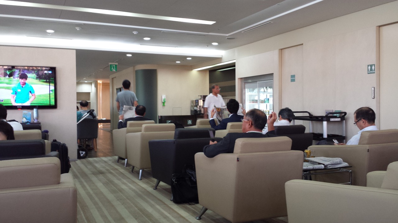大韓航空のラウンジですが、JAL利用時の指定ラウンジにもなっています。出国審査前にあるため、ある程度余裕を持って出発ゲートに向かう必要があるのが不便です。内部は利用者の割にスペースが狭いのか、座席が所狭しと並ぶ簡素な造りです。食事は、カップラーメンとサンドイッチ、マフィンなどの軽食がありました。