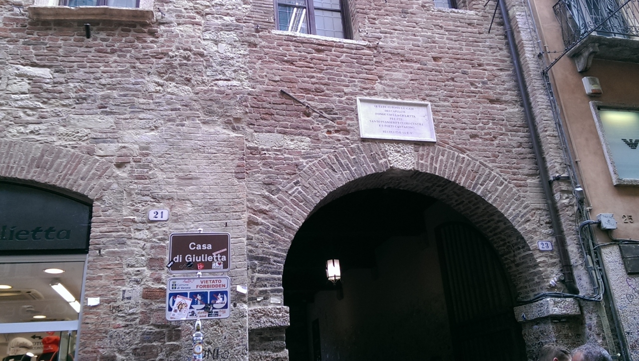 ベローナを観光した際にここを見学しました。ブラ広場から大きな通りを歩いていると、このジュリエッタの家の行き方が書かれた看板があるのでわかりやすいです。中は結構混んでいましたので外から眺めるだけでしたががそれでも見るべきものは見た、という感じです。