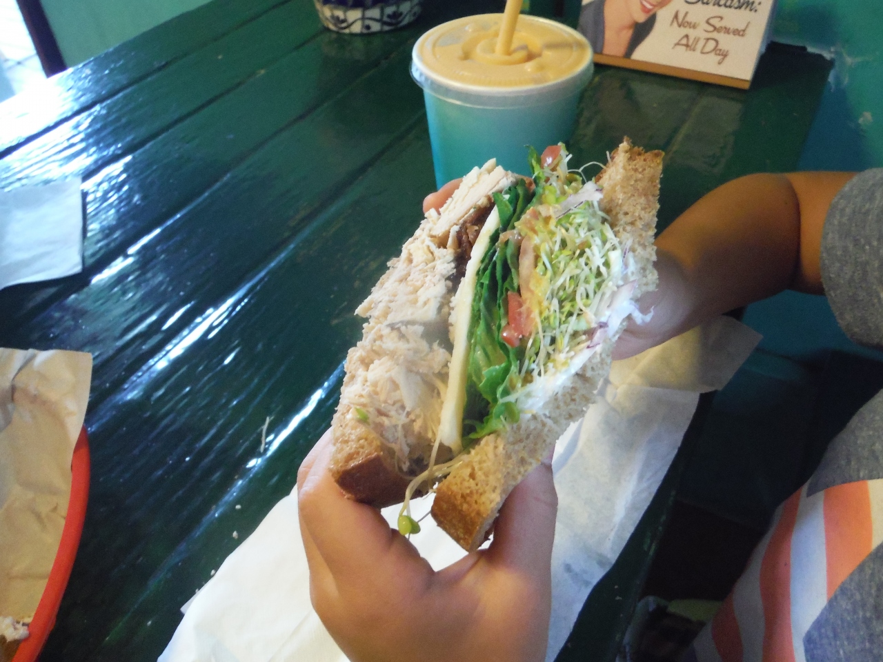 自家製パンのサンドイッチ、クッキーがいただけます。お店の人も親切です。野菜たっぷりでヘルシー!息子はクッキーが気に入ったらしく2枚食べました。ハレイワでいろいろつまみ食いしたい方にいいかもしれません。