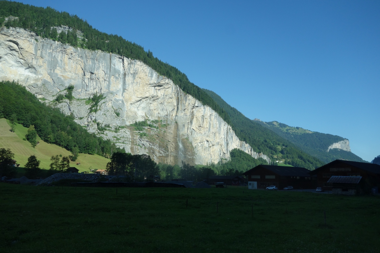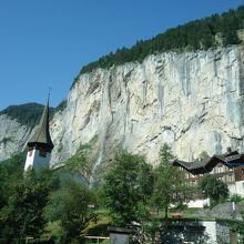 ガイドブックなどでよく目にするシュタウフバッハ滝(シュタウプバッハ?)。崖から流れ落ちる大きな滝でラウターブルンネンから目にしやすいので、すぐに見つけられます。