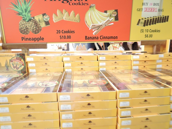 全てカンボジアの食品を使い作られたアンコールワットクッキー。値段は少々高いけどカンボジアのお土産としてプレゼントするなら安心できる方が良いので、そういった意味ではオススメの商品です。日本人がこちらのお店を作った事もあり、簡単な日本語が出来る店員と試食や日本語のメニューなどが用意されています。商品を購入した時にお店が出来るまでの簡単な冊子を頂きましたが、苦労の内容の他にも面白い出来事がかかれているので、お店に行った際には是非読んでみてください。