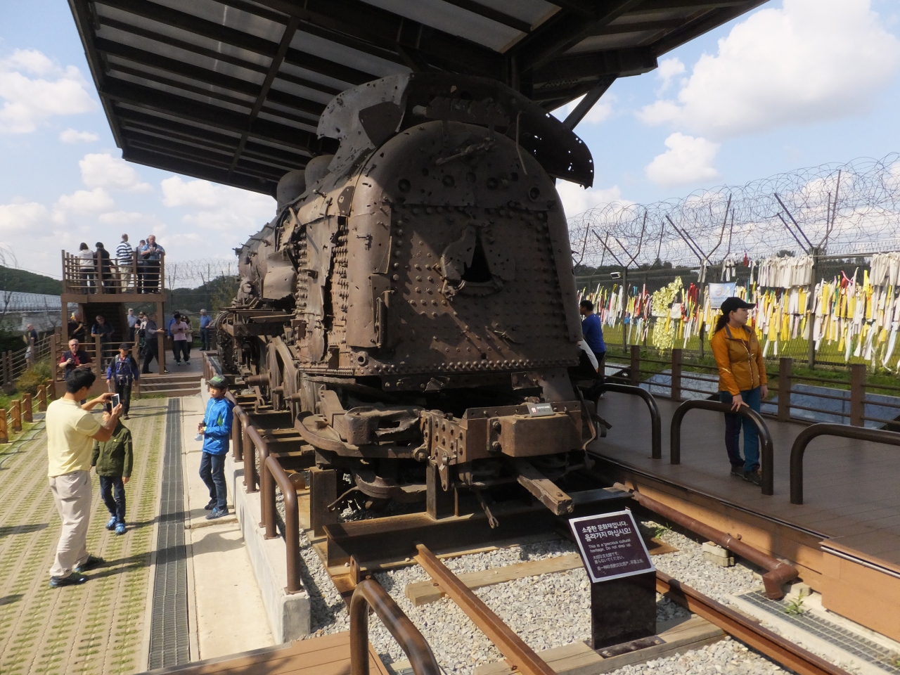 朝鮮戦争中に使われた機関車や、休戦協定締結後に捕虜が渡って帰って来た「自由の橋」などを見ることができました。