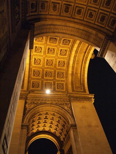凱旋門に昇る際 は、地下にある入り口に行き、20~30分並んだ後に内部に入ることが出来ました。長い螺旋階段を昇るとパリの景色が一望できる展望台となっています。ここだとエッフェル塔を含んだパリの風景を写真に納めることが出来ます。夕方から夜にかけて展望台にいると、きれいな夕焼けや、街が電灯やライトアップで煌めいていく様子、エッフェル塔のシャンパンフラッシュ等を楽しむことができました。シャンゼリゼ通り、モンパルナスタワー、サクレクール寺院、新凱旋門も見れました。