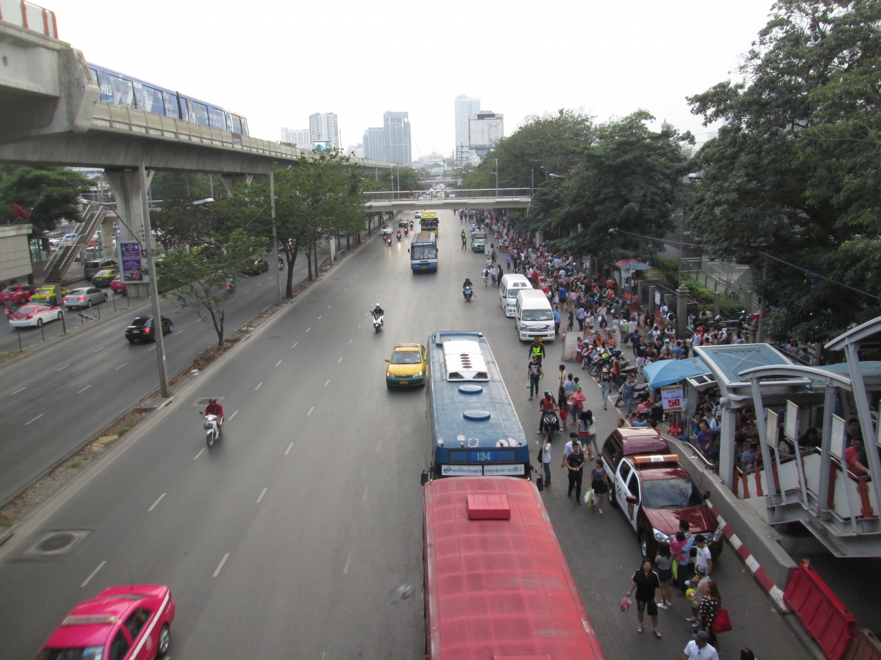 歩道橋から見る光景でこの日のウィークエンドマーケットの混雑状況が分かります。とにかくものすごい訪問客です。マーケットが開催する土日はチャトゥチャック公園や駅構内には通路に座って休憩している人がいます。