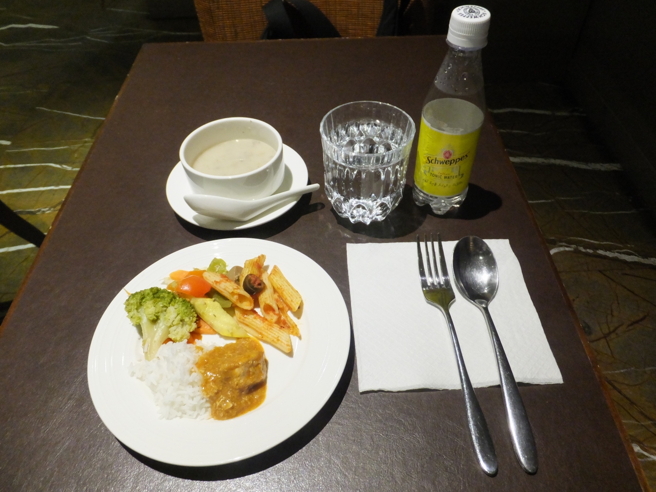 国際線ターミナルで唯一のラウンジ"Leela Lounge"で夜食をいただきました(プライオリティ・パスで入れるラウンジは国内線ターミナルにしか無いようです)。深夜だったこともあってか、ほとんど貸切状態。照明が暗くとてもシックな雰囲気でした。食事も種類が豊富で美味しかったです。