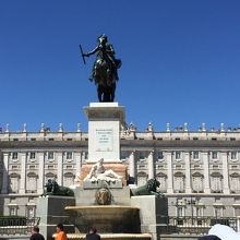 王宮の東側に造られたことからオリエンテ広場と名づけられたそうです。中央部には、フェリペ4世の騎馬像があります。この騎馬像が珍しいのが、後ろ脚2本で立っていることで、技術的にも難しいものだそうです。この像を囲むように、スペイン国王らま20体の彫像が立っています。