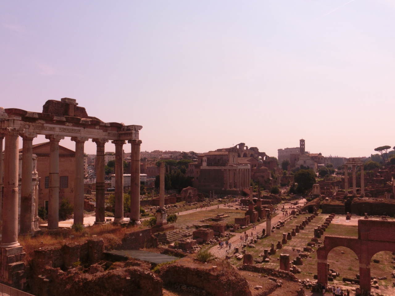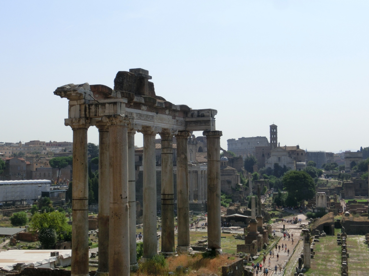 フォロロマーナは 行っても わけもわからず 疲れるかなあと思い 入場は しませんでした。 その代わりに ベネチア広場から 坂をのぼったところにある カンピオドリオ広場から眺めました。素晴らしい眺めで これだけで 超満足でした。