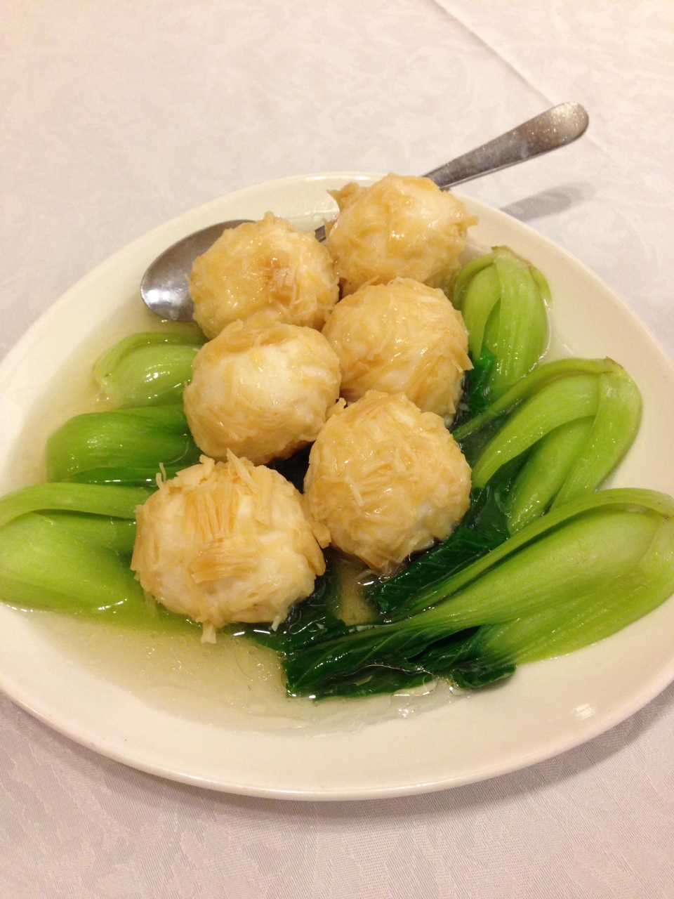 イカ団子、白身魚の塩コショウ揚げ、青菜A菜、炒飯等で