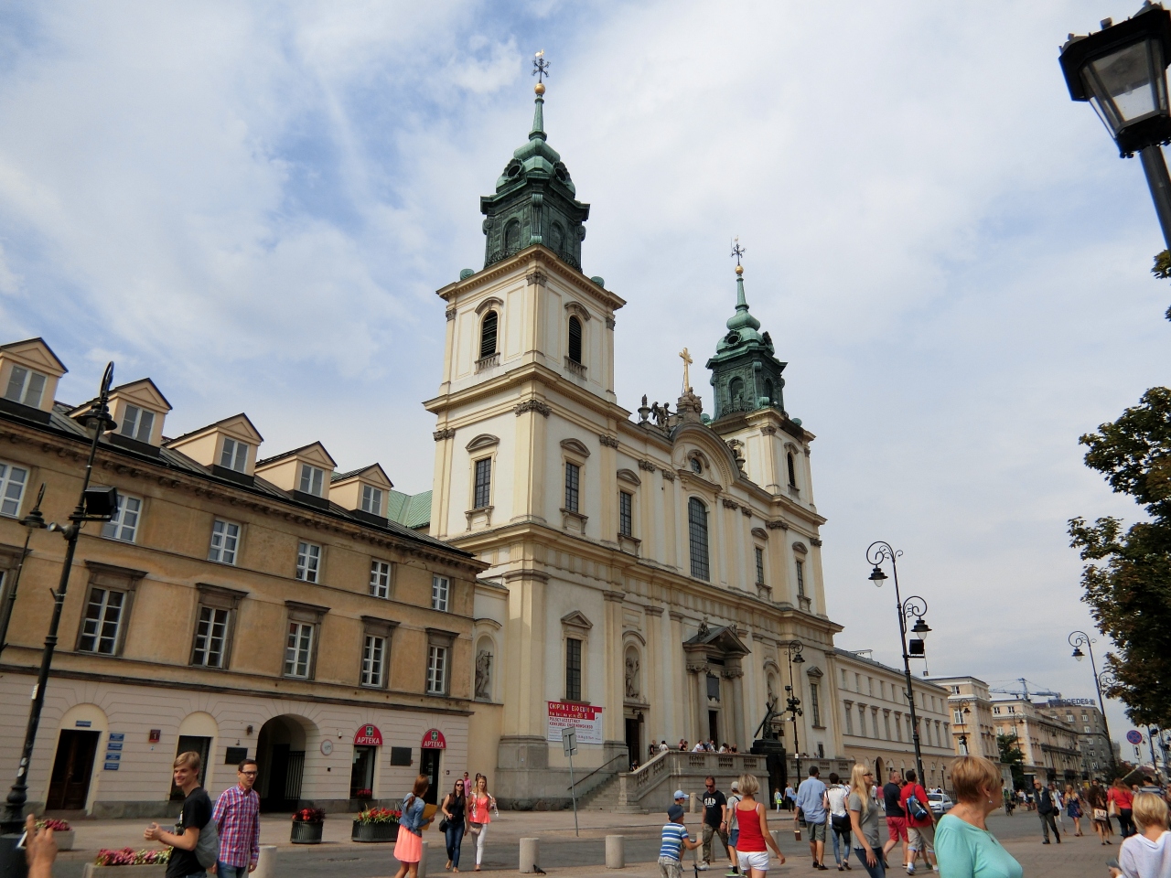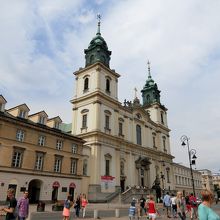 クラクフ郊外通り沿いでワルシャワ大学の斜め前です。大きな2本の尖塔が目立つ教会で教会の前には十字架を背負ったイエス像がありました。