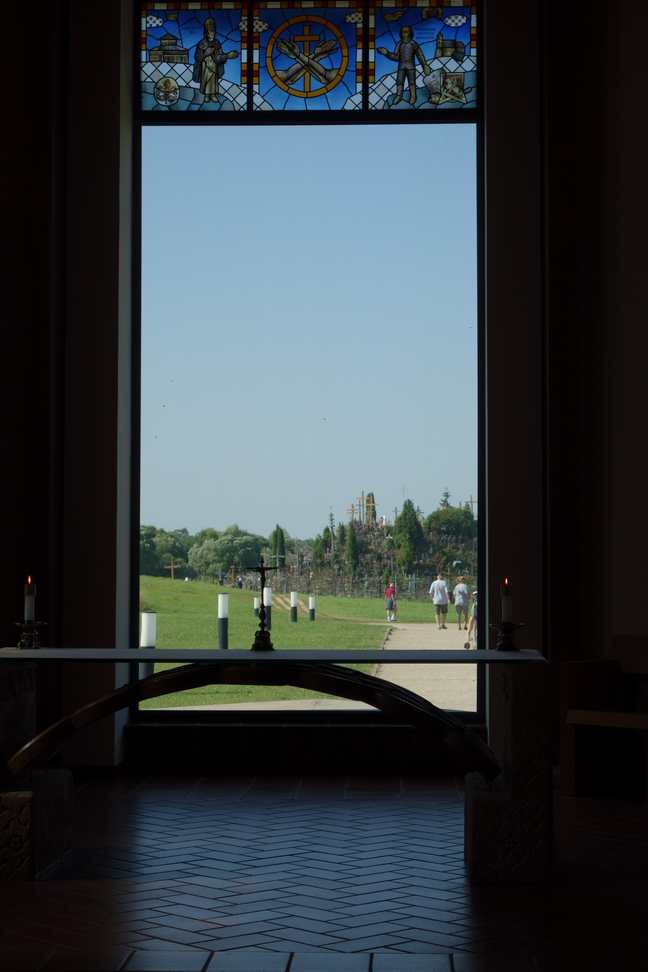 割と雑然と十字架が並べられていました。なんとなくゴミの山。2000年に聖フランシスコ教会が近くに建てられています。十字架の丘を借景にしていて、祭壇から丘が見える仕組みになっています。なんとなく逞しい商魂を感じました。