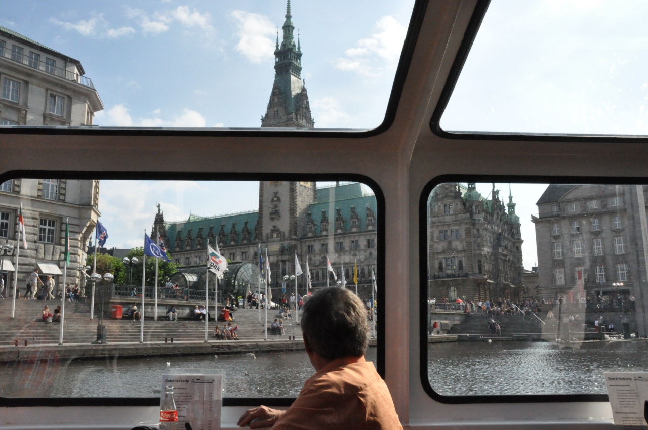 ハンブルクの絵葉書などにもよく用いられる、緑の屋根が特徴的なハンブルク市庁舎です。運河を遊覧しても必ず市庁舎の前を通ります。市庁舎の周りには人々が憩っているのが見えます。水上からの眺めがおすすめです。