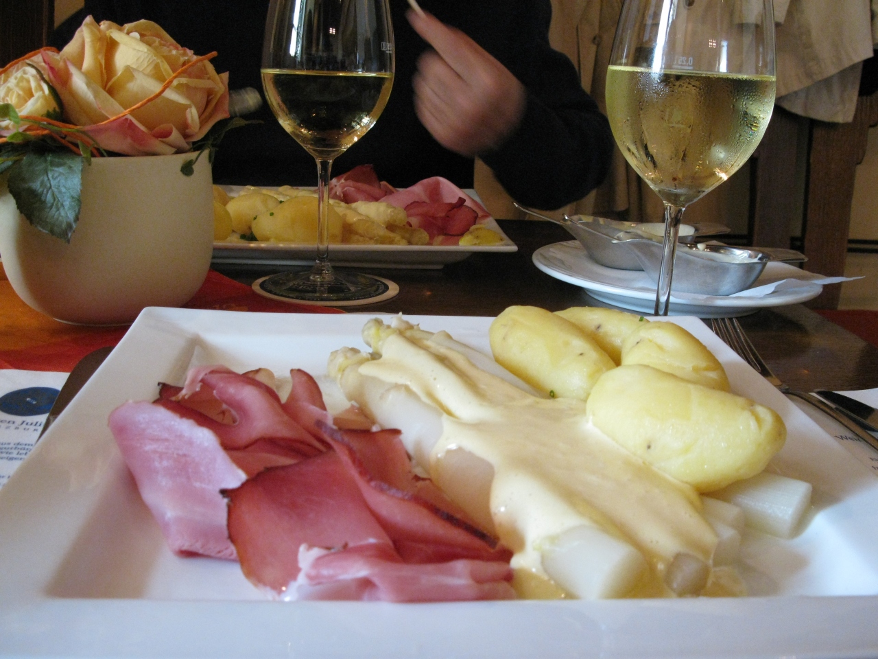 毎年、5月ごろの白アスパラガスが食べられる時期に来ます。ここのが一番おいしいのです。ヴュルツブルグの友人も同感でした。アスパラガスの品質はもちろん、じゃがいも、ハム、ソースのすべてのバランスが絶妙です。