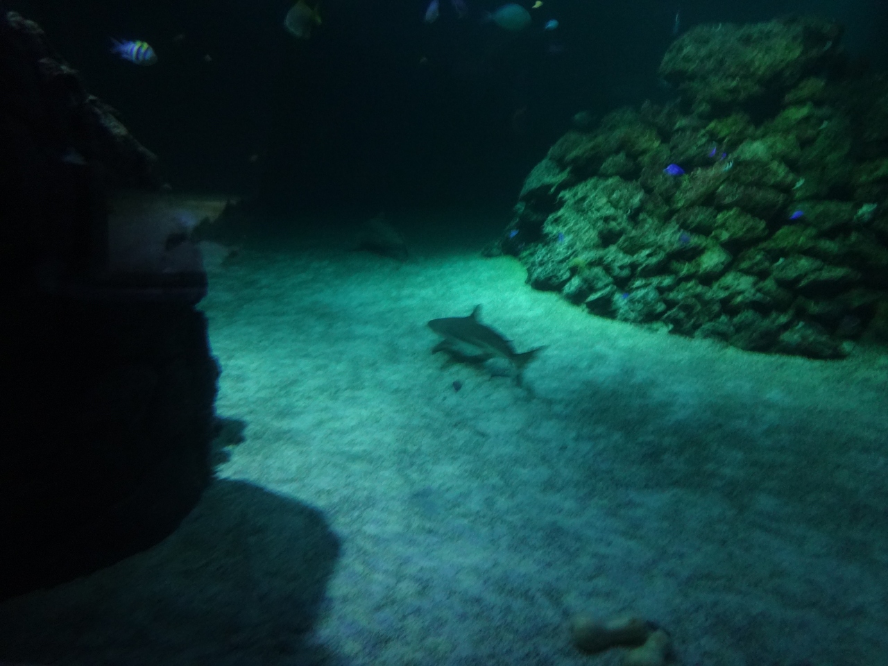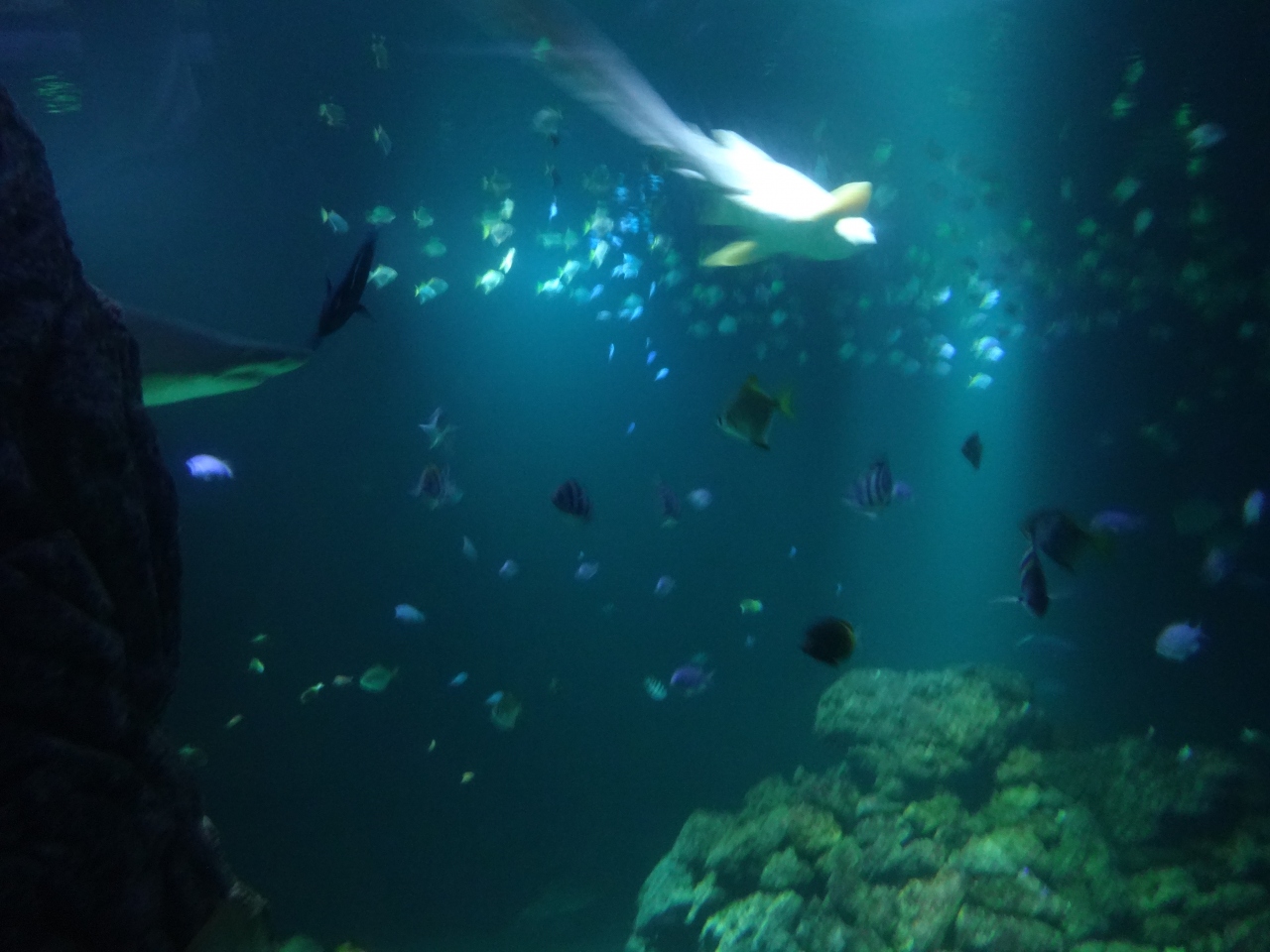 水族館で、サメや色鮮やかな魚を鑑賞した後、
