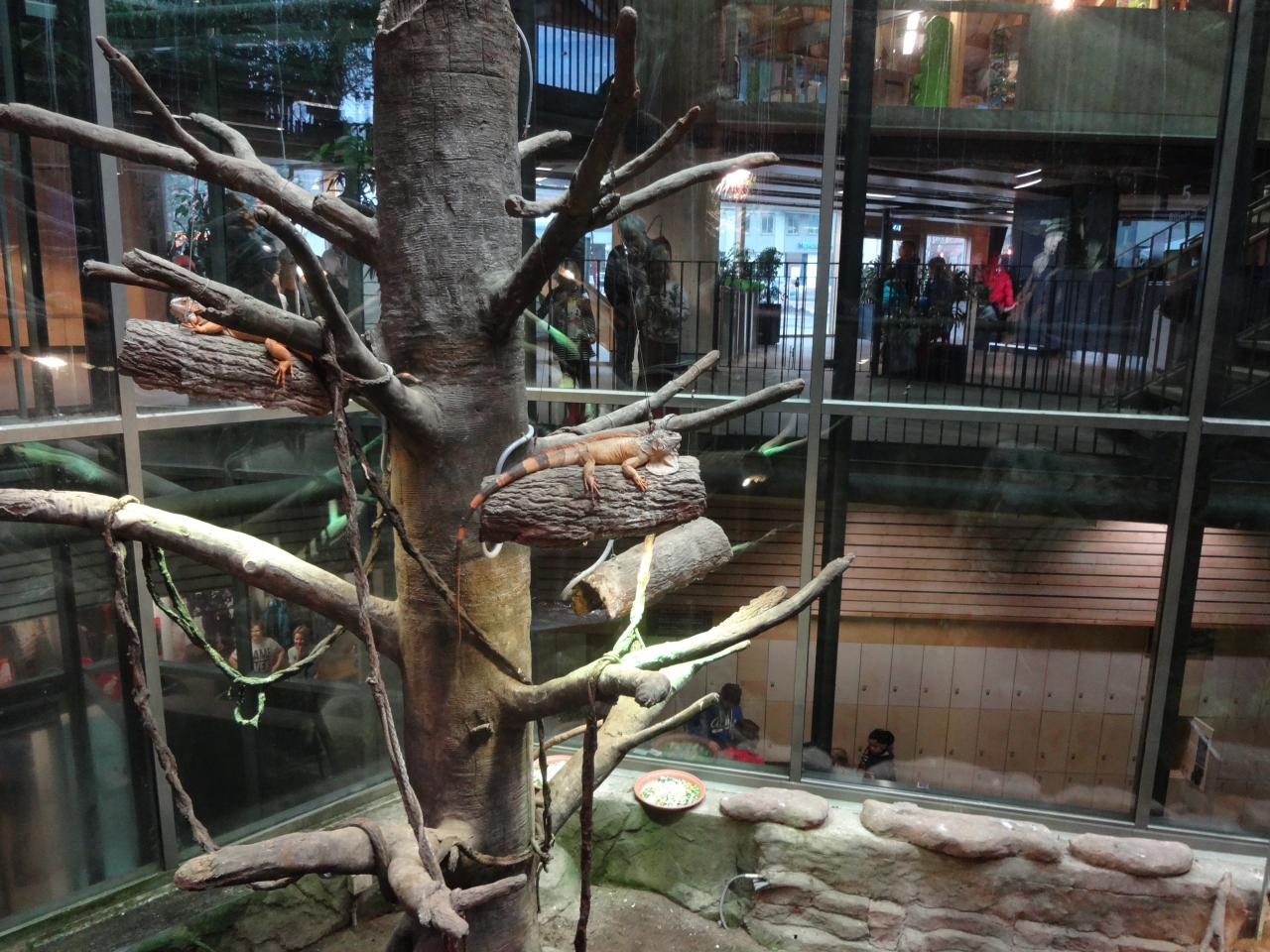 屋内の熱帯雨林で、鳥、サル、イグアナなどを身近に見ることができる。