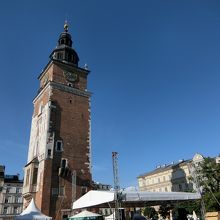 中央市場広場の織物会館の裏手にあります。広場の中では高い塔なので目立ちます。この塔は13世紀の終わりに建てられました。市庁舎は中央広場を広げるため1820年に取り壊されましたが、その時この塔だけ残されたのです。