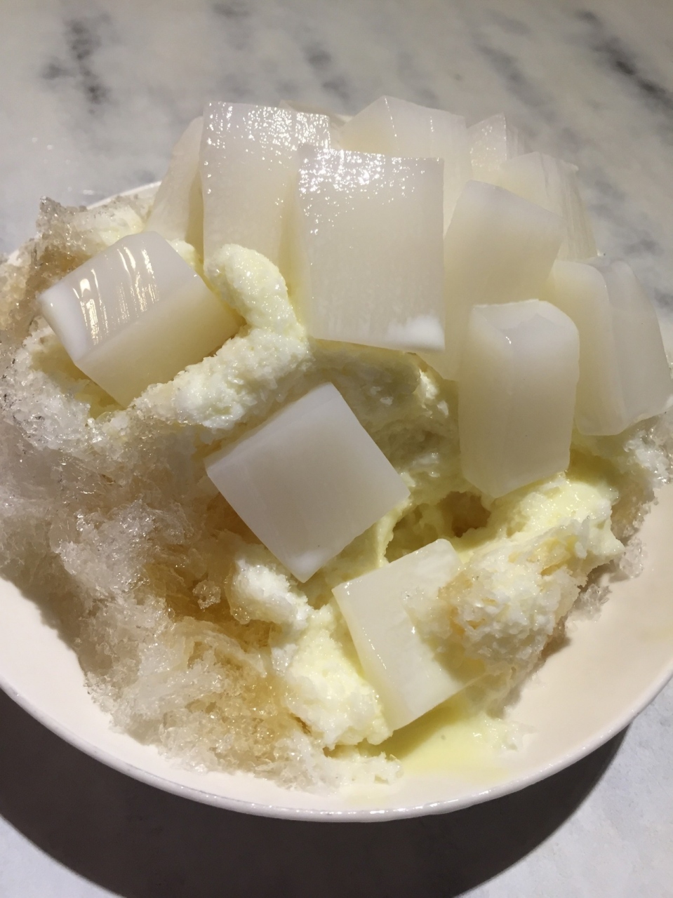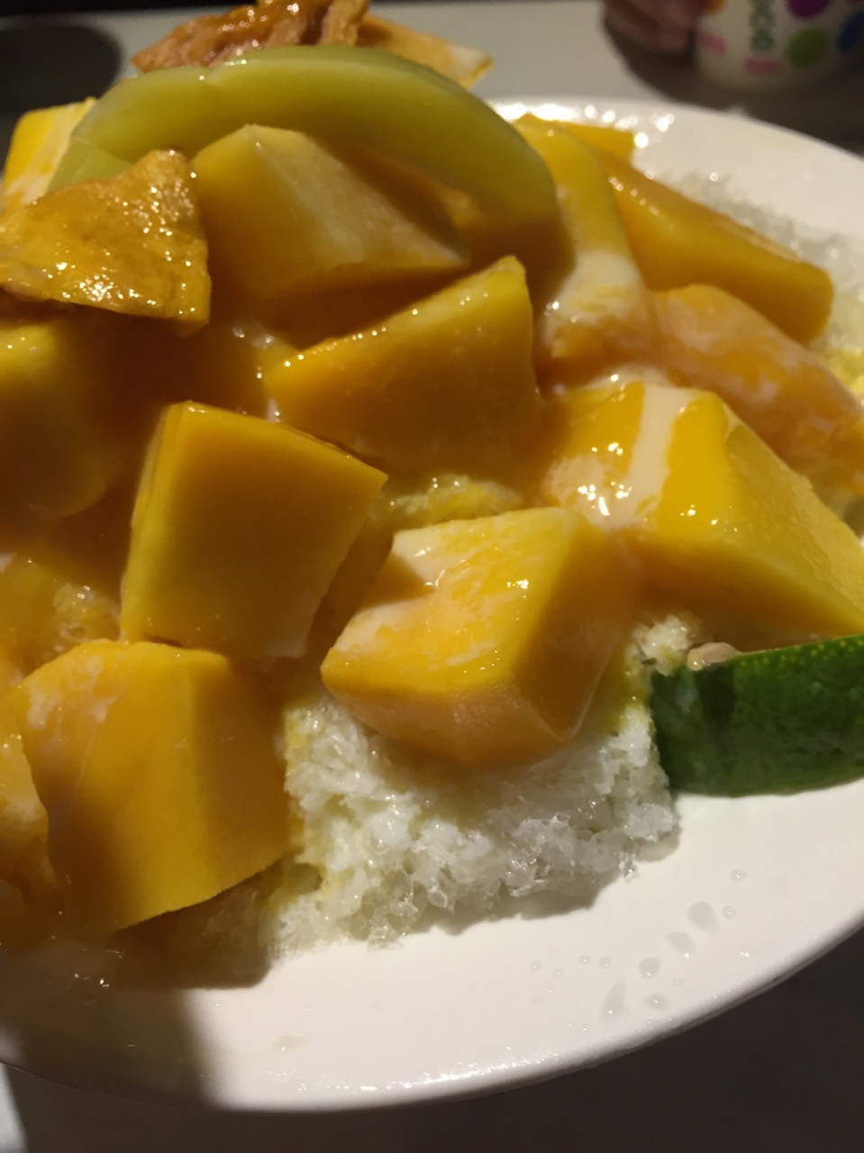 出てきてびっくり!なたっぷりのマンゴーをのせたカキ氷はオススメメニューのひとつです!