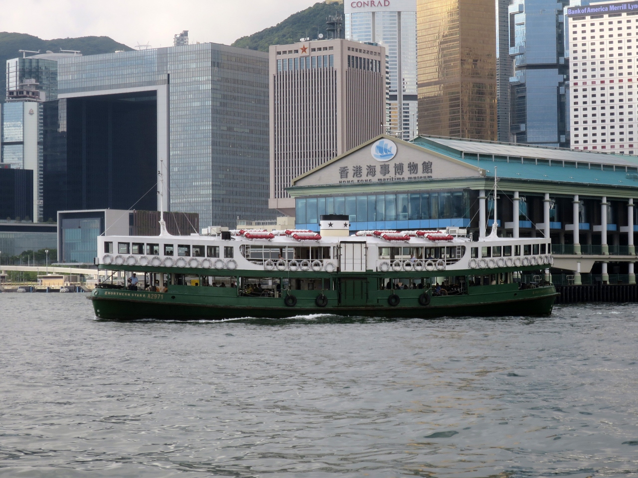 - 何と言っても香港を代表する乗り物ですし、尖沙咀〜中環、尖沙咀〜湾仔という路線も観光客には便利です…荒天時には上層デッキのガラス張りエリアへ