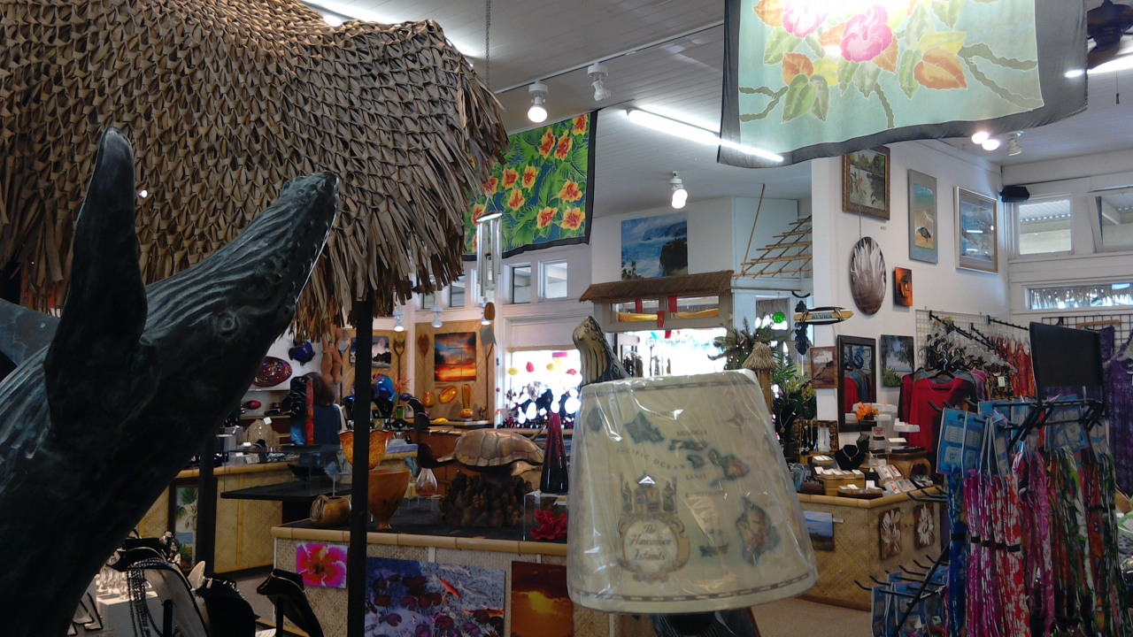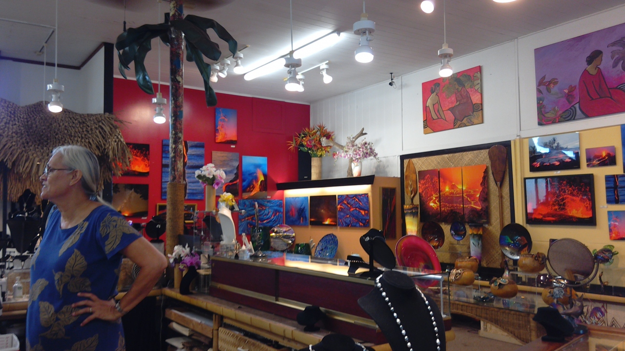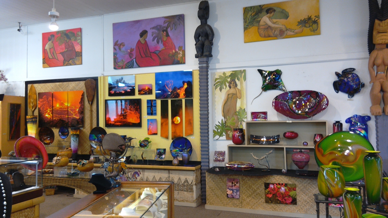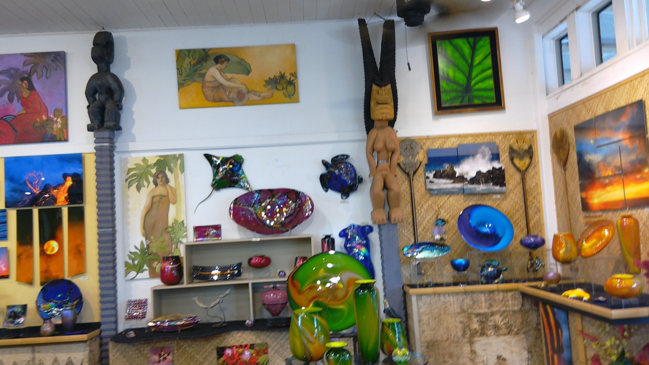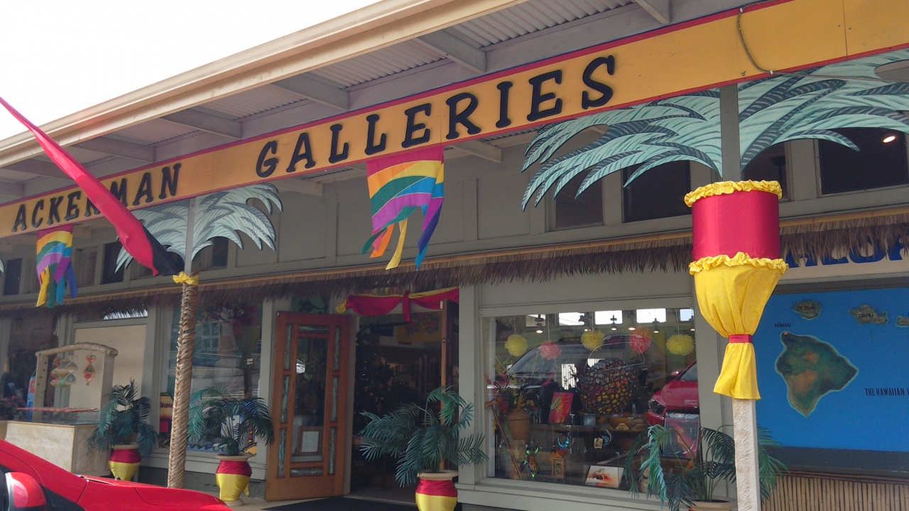 2015年サマーバケーション・ハワイ島の7日目・最終日前の日にパーカーランチでランチをした後にマウンテンロードを通ってカメハメハ大王像とポロル渓谷を観に行きました。帰りにカメハメハ大王増の前に位置する「アッカーマン・ギャラリー」に行きました。ハワイ島のお土産品も沢山置いてあり幾つか購入して帰りました。
